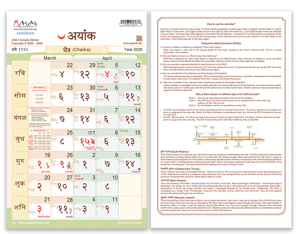 Introducing the Ayank Hindu Calendar, a revolutionary way to reconnect with the ancient wisdom of the Sanatan Dharma, designed specifically for the USA and Canada regions.